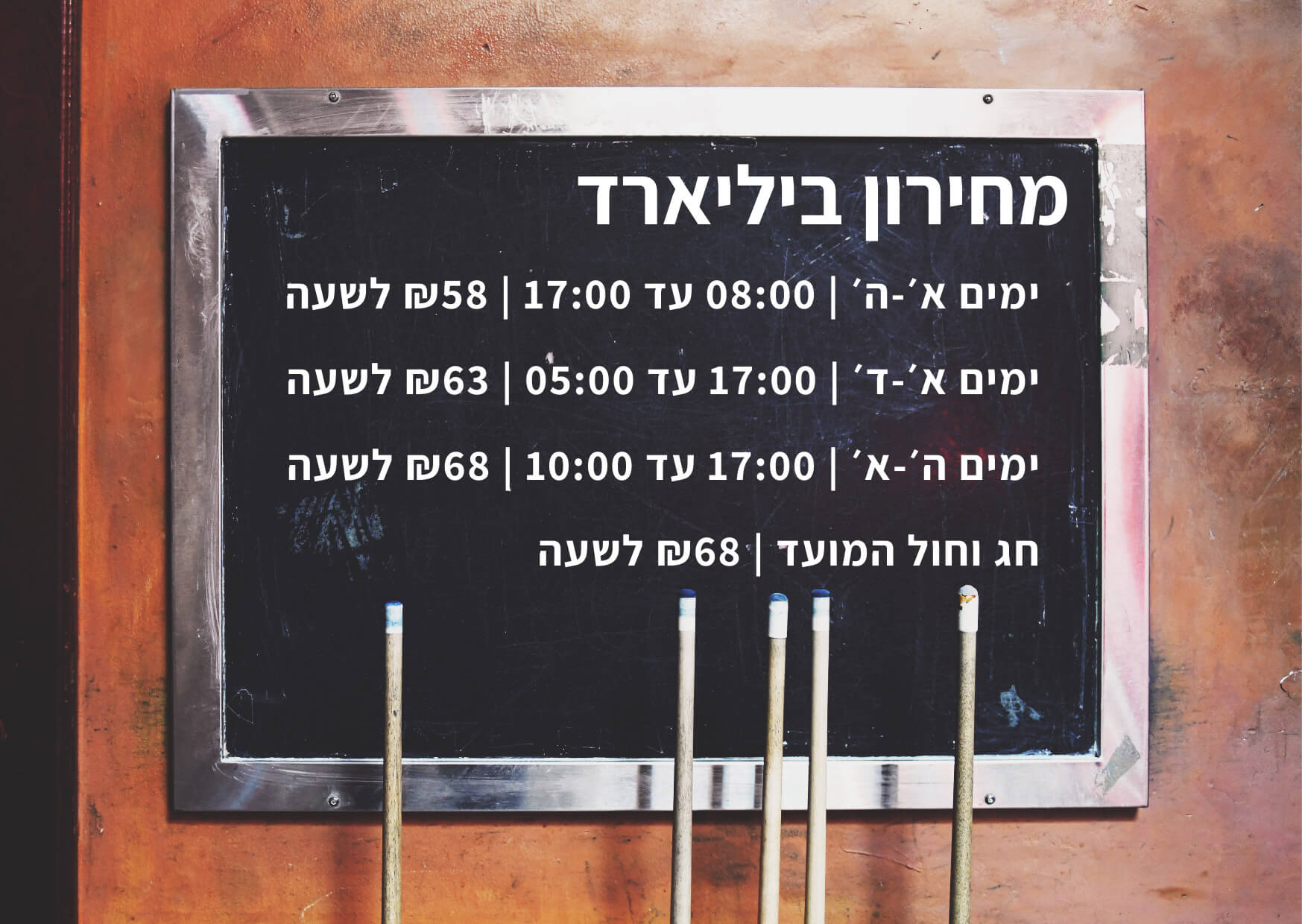 החל מהשעה 21:00 הכניסה לביליארד בר מגיל 18 ומעלה.
